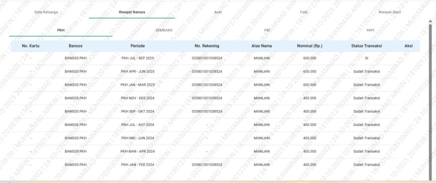 Kepala Dinas Sosial Kabupaten Pringsewu, Debi Hardian, S.pi., M.Si. mengatakan bahwa Manijan merupakan penerima aktif sejumlah program bantuan seperti Program Keluarga Harapan (PKH), program sembako (BPNT), dan Penerima Bantuan Iuran (PBI) APBN untuk jaminan kesehatan.