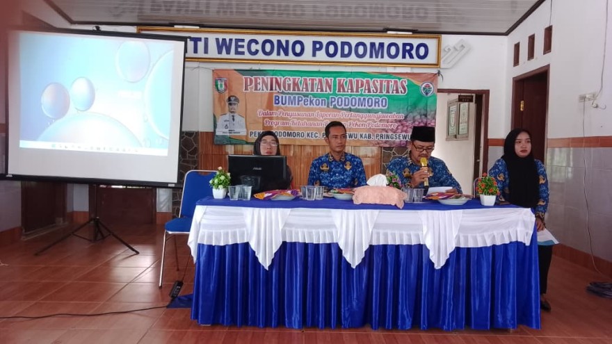 Pemerintah Pekon Podomoro mengadakan pelatihan terhadap pengurus BUMPekon serta kepada unsur masyarakat lainnya dalam peningkatan kapasitas dalam penyusunan laporan pertanggungjawaban program ketahanan pangan.